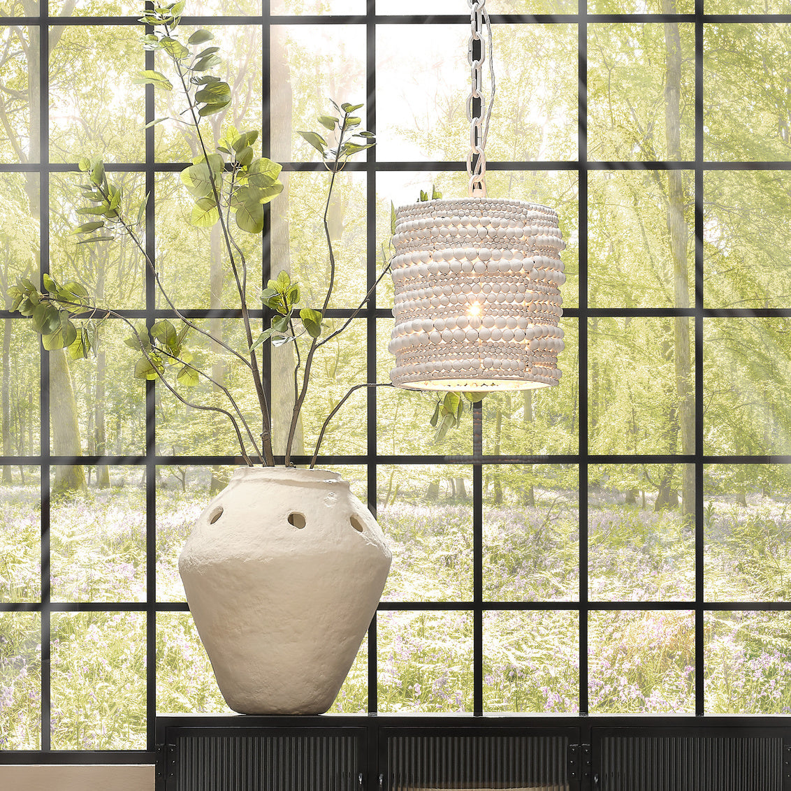 This easygoing, lighthearted look is created from dozens of hand-carved mango wood beads. To celebrate the beauty of the hardwood, our artisans give a selection of the beads a natural finish. Others are hand-painted in blue or white. Each is placed by hand. These pendants evoke ocean breezes and tropical destinations and are a wonderful way to create an at home oasis for your friends and family.