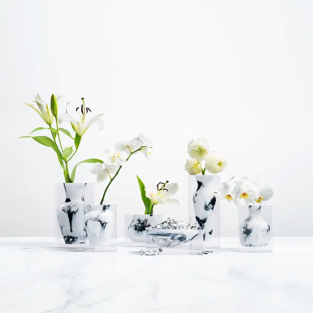 Crafted from luxury acrylic resin, this minimalist vase is perfect for any decor. Each piece is hand-poured, cut, and polished, ensuring a unique and high-quality finish. The non-slip rubber grips on the base provide stability, making it ideal for any surface. This vase arrives in beautiful gift packaging, ready to impress.